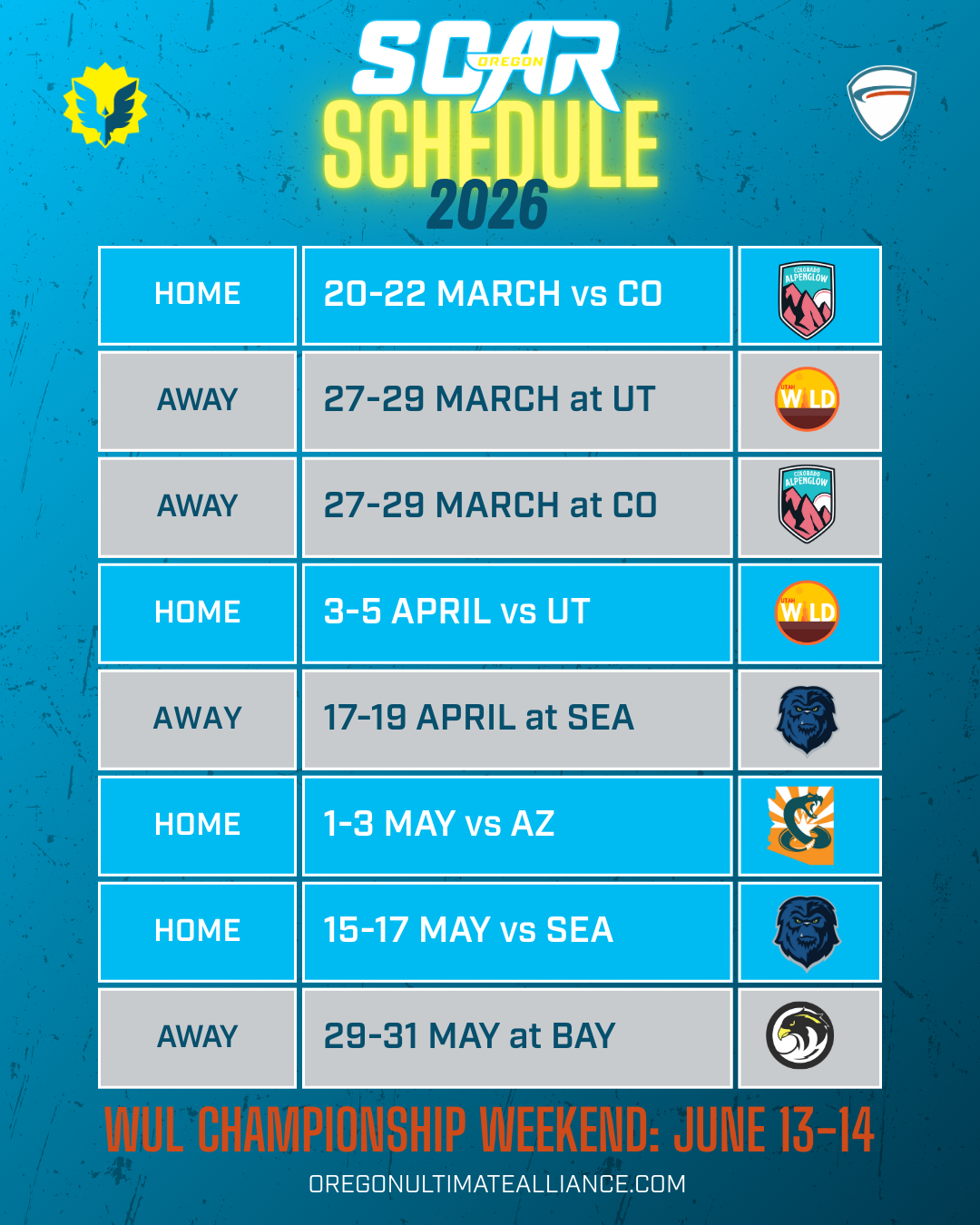 Oregon Soar & Steel take on Seattle Tempest & Cascades in this Pacific Northwest Rivalry Game to kick off the 2026 Season.